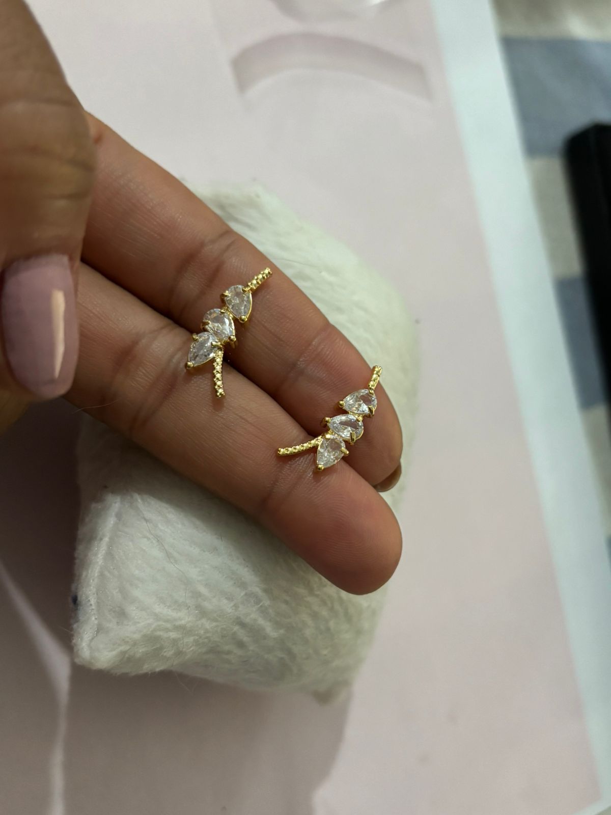 Brinco ercuf com zircônias, folheada a ouro 18.